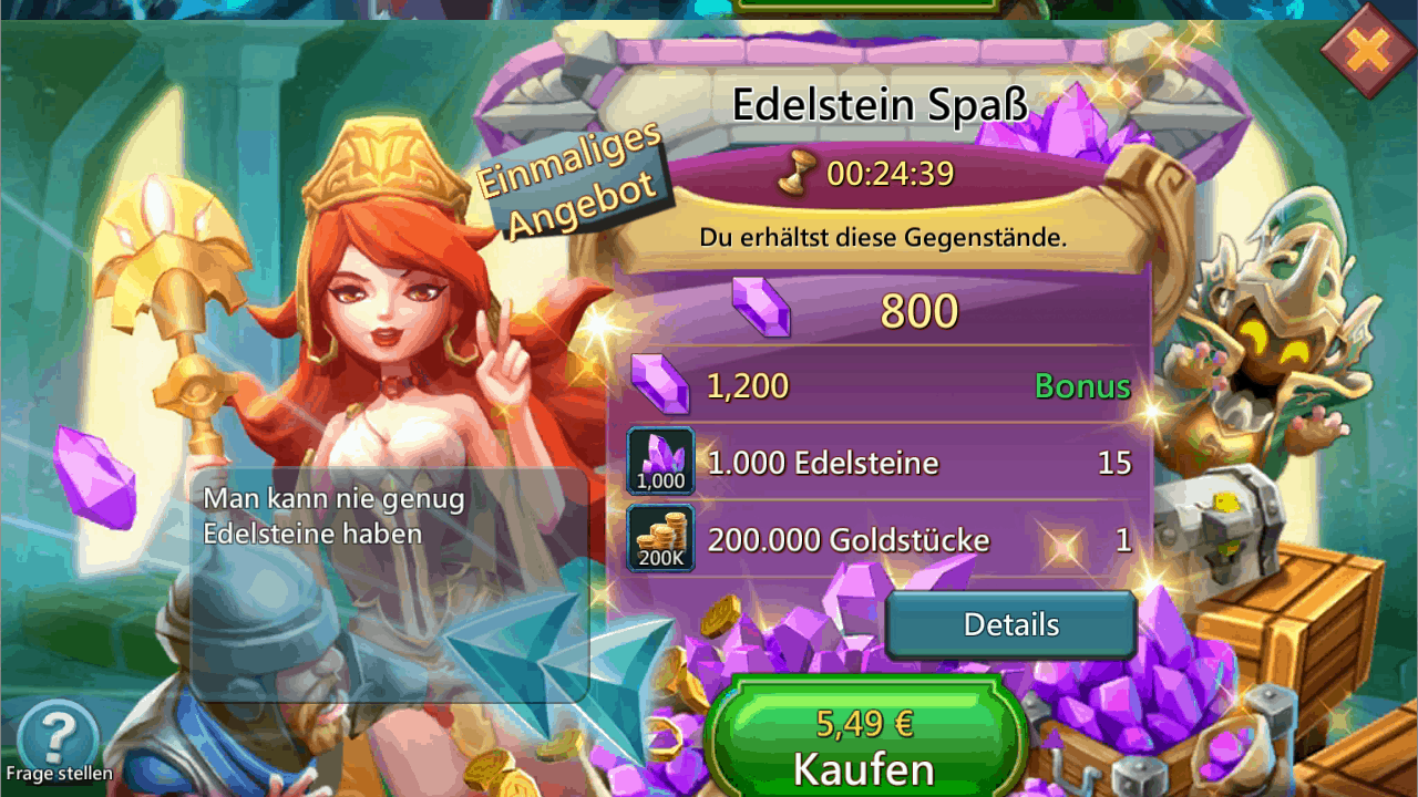 Passend zu dem Schnäppchenshop kann man natürlich aktuell auch das Edelsteinpaket kaufen, damit man diese im neuen Shop direkt ausgeben kann.