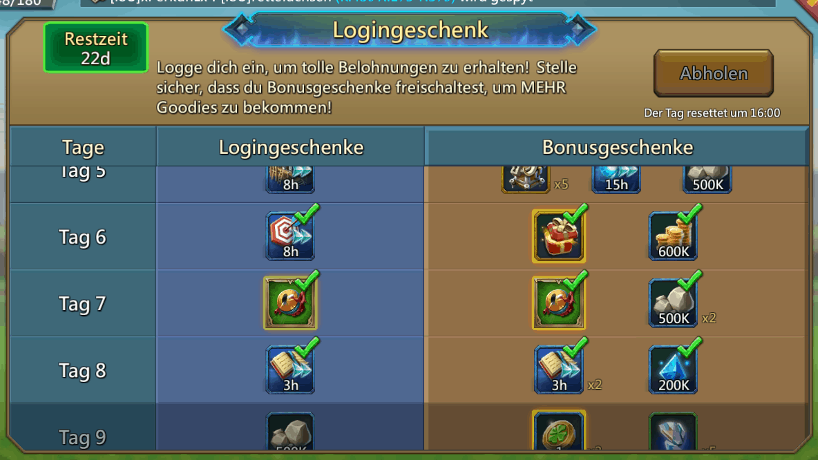 Mit dem Update davor, wurden die Logingeschenke eingeführt. Immer im 3 Wochen Rhytmus gibt es nun Login-Geschenke, die man für das tägliche Einloggen erhält. Für 2,29 € kann das tägliche Logingeschenk aufwerten und ehält alle Geschenke der rechten Seite zusätzlich. Dafür muss man innerhalb der 3 Wochen nur einmalig die 2,29 € bezahlen und erhählt auch rückwirkend die Geschenke der rechten Seite, die Bonusgeschenke.